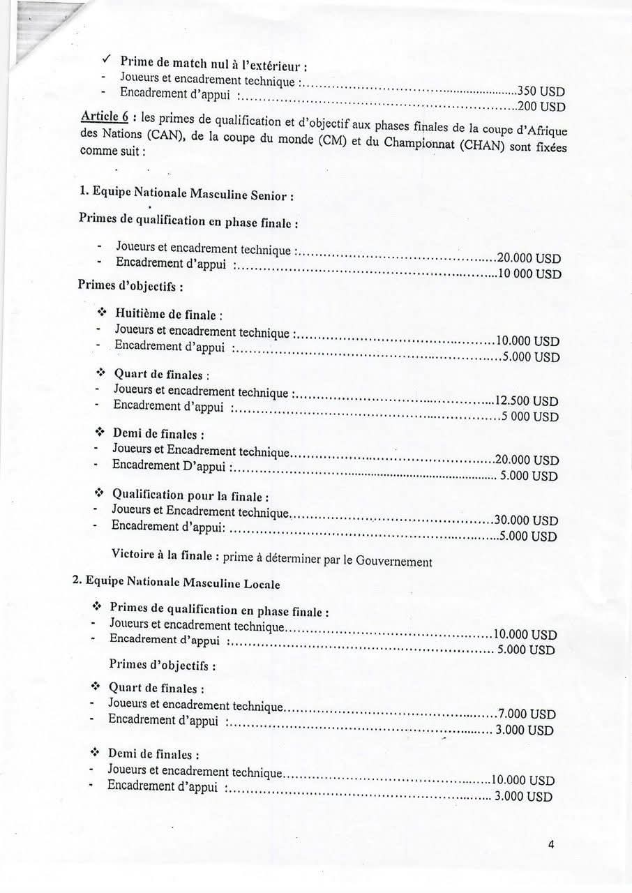 5. Prime de qualification aux phases finales des compétitions africaines et mondiales ;