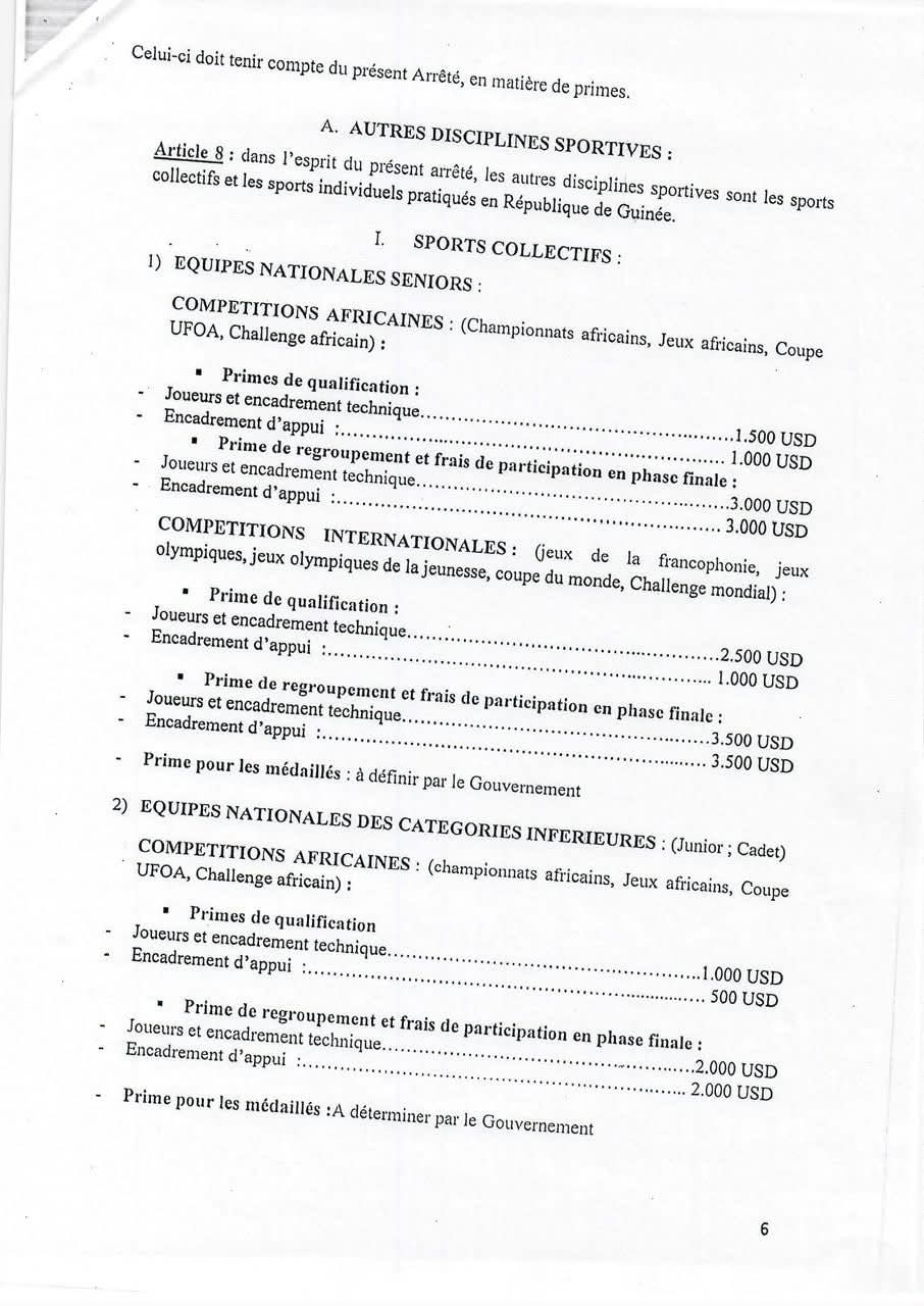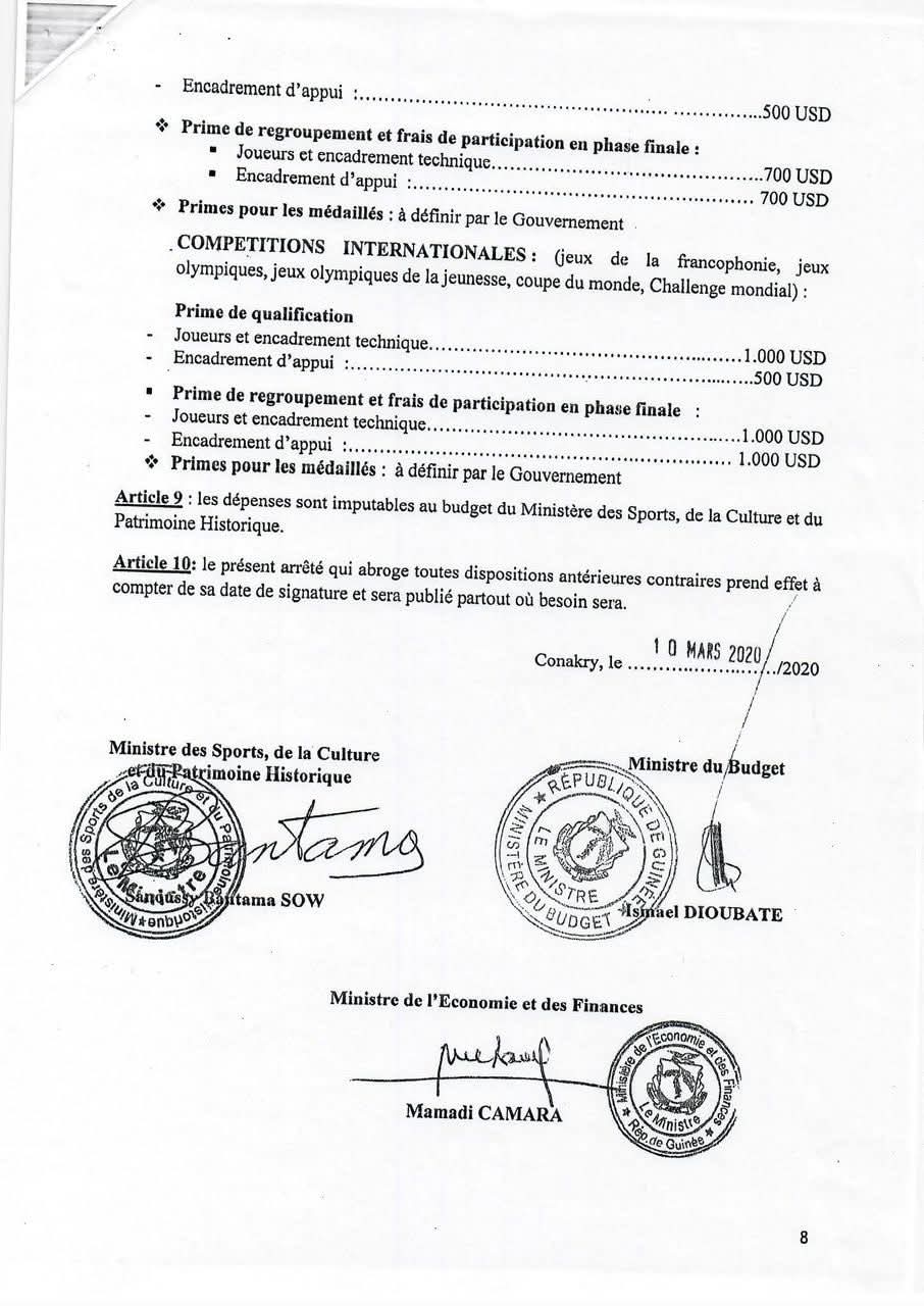 Pourtant, l’arrêté conjoint nᵒ 711, signé à l’époque par Sanoussy Bantama Sow (Sports), Ismaël Dioubaté (Budget) et Mamadi Camara (Économie et Finances), fixe le montant des primes allouées aux sélections nationales de football et autres sports.