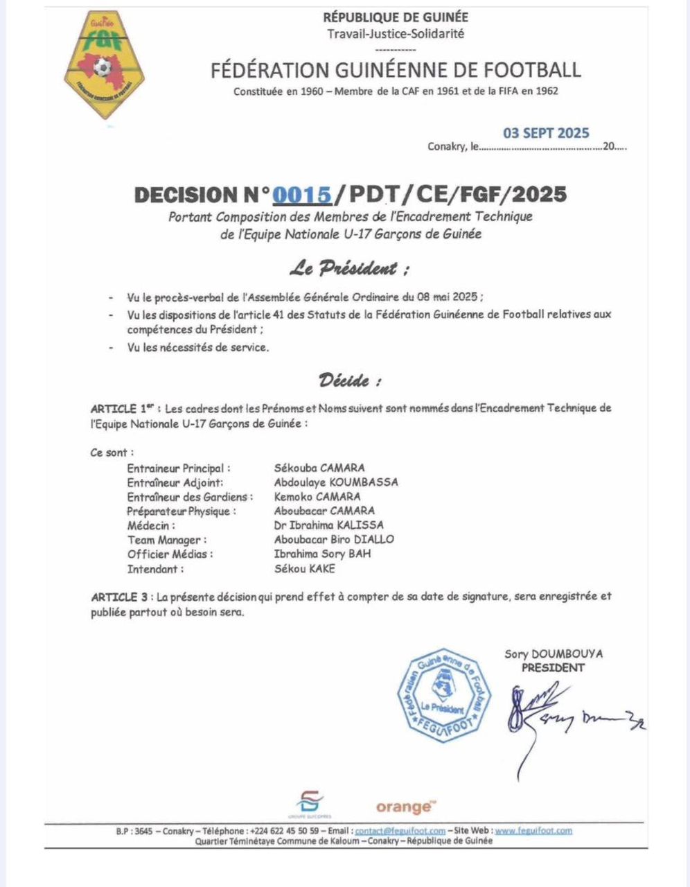 Sa mission principale sera de relancer le Syli U17, longtemps absent des grandes messes internationales en raison des cas répétés de fraude sur l’âge.