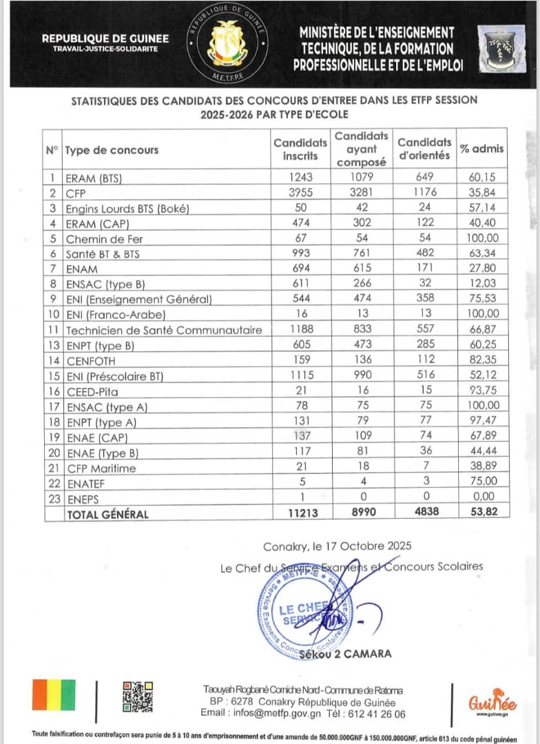✅ Les listes des admis peuvent être consultées sur la 𝐩𝐥𝐚𝐭𝐞𝐟𝐨𝐫𝐦𝐞 𝐏𝐚𝐫𝐜𝐨𝐮𝐫𝐬𝐏𝐑𝐎 𝐯𝐢𝐚 𝐜𝐞 𝐥𝐢𝐞𝐧…👉 https://www.parcoursproguinee.org/resultats-des-concours-dacces/