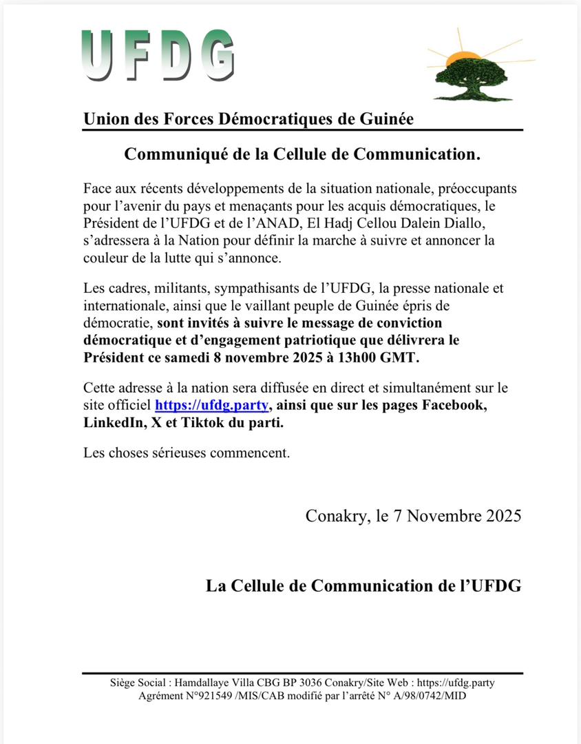 Share FacebookTwitterWhatsAppCourrielFacebook MessengerLinkedinTelegramViberPrint Le leader de l’UFDG convie citoyens, militants et médias à un discours historique sur la sauvegarde des acquis démocratiques. Guinee7.com J’aime ça :J’aime chargement… Articles similaires Cellou Daleindémocratiquerépliques'organise Share FacebookTwitterWhatsAppCourrielFacebook MessengerLinkedinTelegramViberPrint