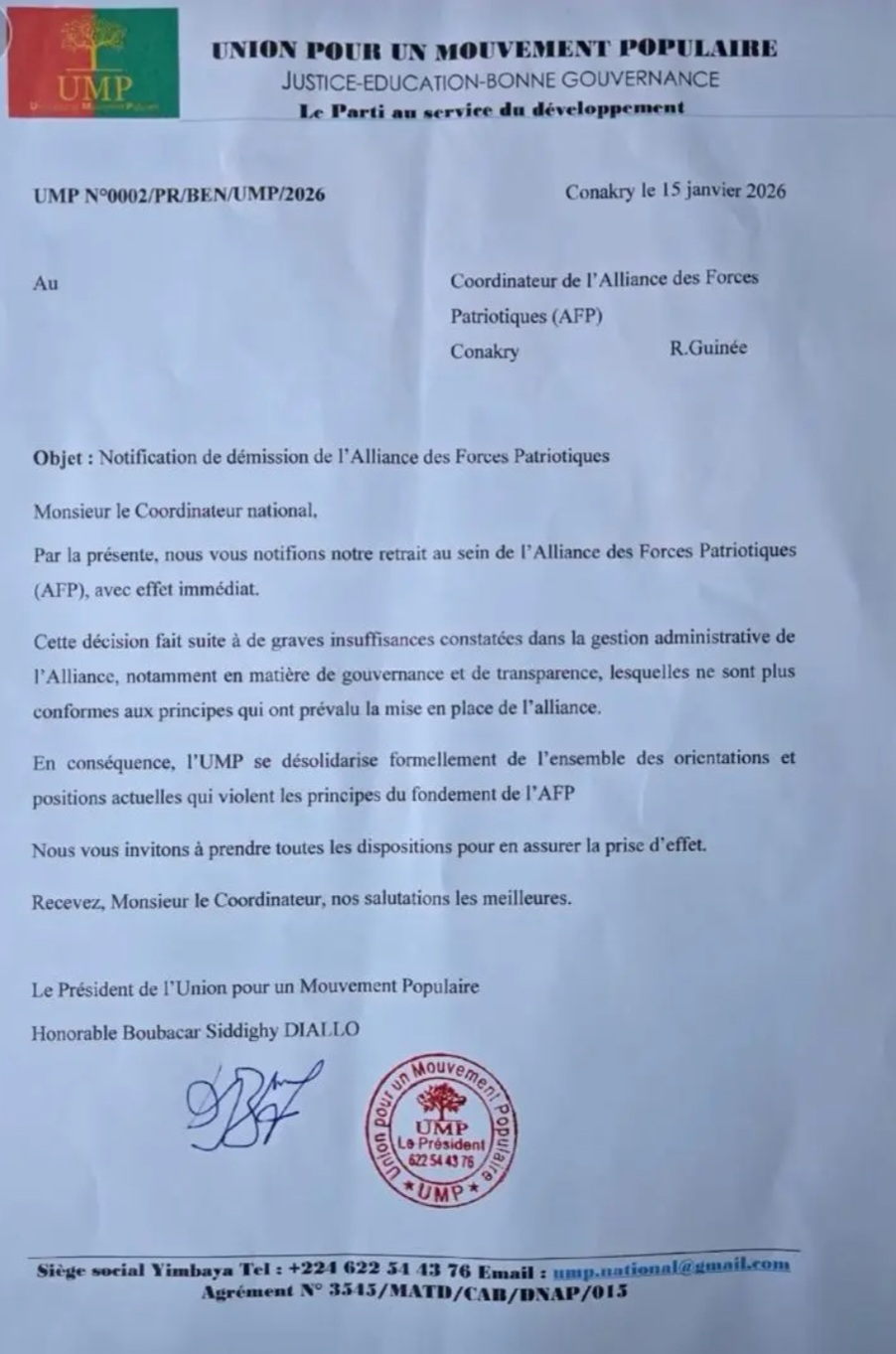Cette défection, qui s’ajoute à d’autres départs récents, fragilise davantage la cohésion de l’AFP et met en lumière de profondes divergences internes.
