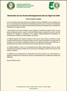 La déclaration, rendue publique depuis Abuja, au Nigeria, marque ainsi la volonté des États membres de la CEDEAO de se positionner clairement en faveur de la stabilité et du dialogue dans un contexte international particulièrement tendu.