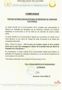 Ce communiqué, signé par le président de l’institution, Boubacar Yacine Diallo, sonne comme un avertissement à l’endroit des promoteurs de médias et des acteurs politiques tentés de prendre de l’avance dans la course électorale.