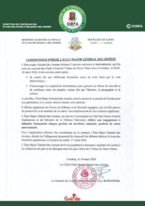 Dans un communiqué diffusé tard dans la nuit, le chef d’état-major général des Armées a annoncé que la Guinée a décidé de l’allègement progressif du dispositif de défense déployé le long des frontières guinéennes, à compter du mardi 17 mars 2026. Cette mesure s’inscrit dans l’application des résolutions issues du sommet de l’Union du fleuve Mano tenu à Conakry.