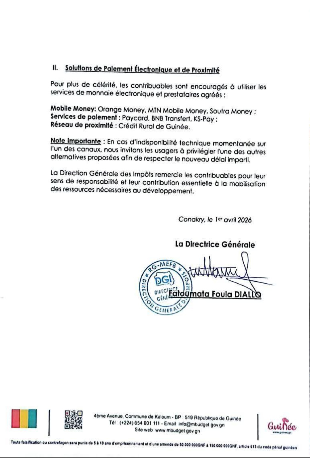 Cette décision fait suite à des perturbations techniques observées sur les réseaux de communication, ayant empêché certains contribuables de s’acquitter de leurs obligations dans les délais.