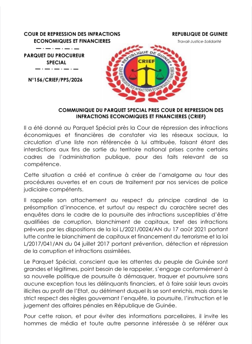 Pour éviter la propagation d’informations parcellaires ou erronées, le Parquet Spécial invite les professionnels des médias et le public à se référer exclusivement aux canaux de communication institutionnels :