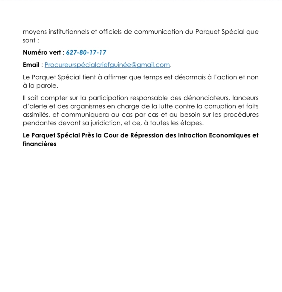 Email : Procureurspecialcriefguinée@gmail.com